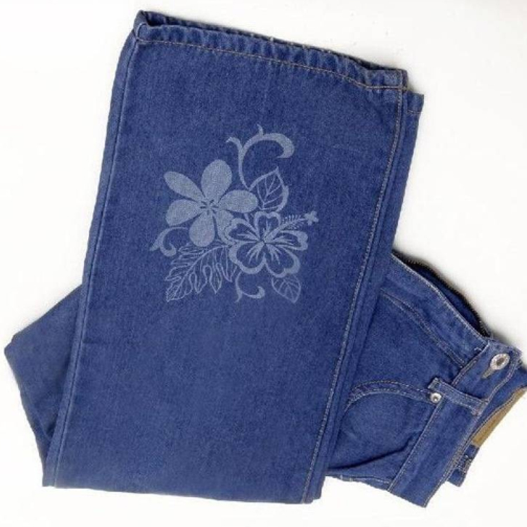 并且比市面上大部分光纤激光打标机精度更高.下面就是牛仔裤案例图