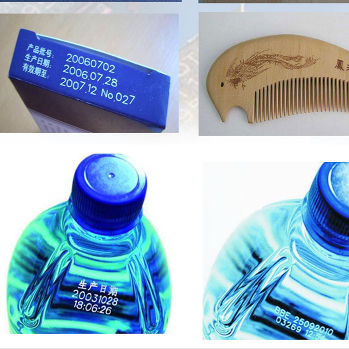 广泛适用于集成电路芯片、电脑配件、工业轴承、钟表、电子及通讯产品、航天航空器件、各种汽车零件、家电、五金工具、模具、电线电缆、食品包装、首饰、烟草以及军用事等众多领域图形和文字的标记,以及大批量生产线作业。