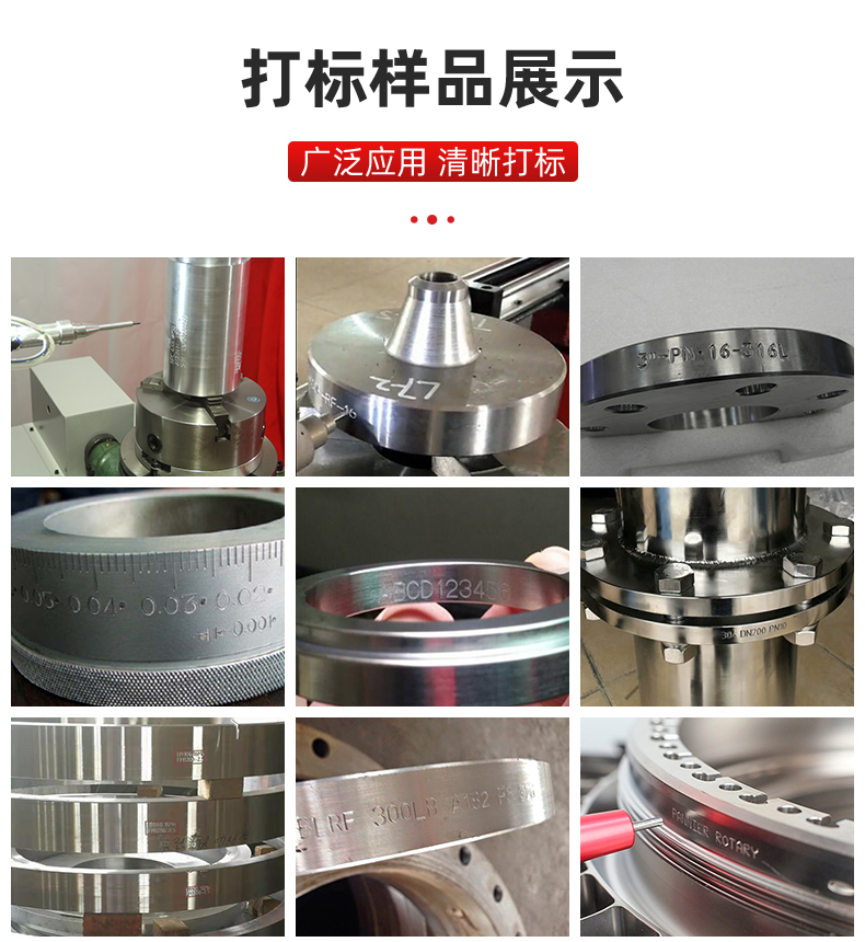 法兰(Flange),又叫法兰凸缘盘或突缘,是轴与轴之间相互连接的零件,用于管端之间的连接;不同压力的法兰厚度不同,它们使用的螺栓也不同。所以需要在其表面用打标机进行型号标识以便管理,这款金属刻字机就是针对法兰、法兰阀、法兰盘等专用的刻字设备。