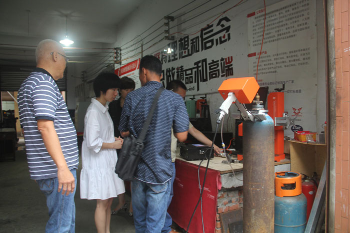 2019年7月16日印尼客户来访重庆初刻对小型打标机非常感兴趣