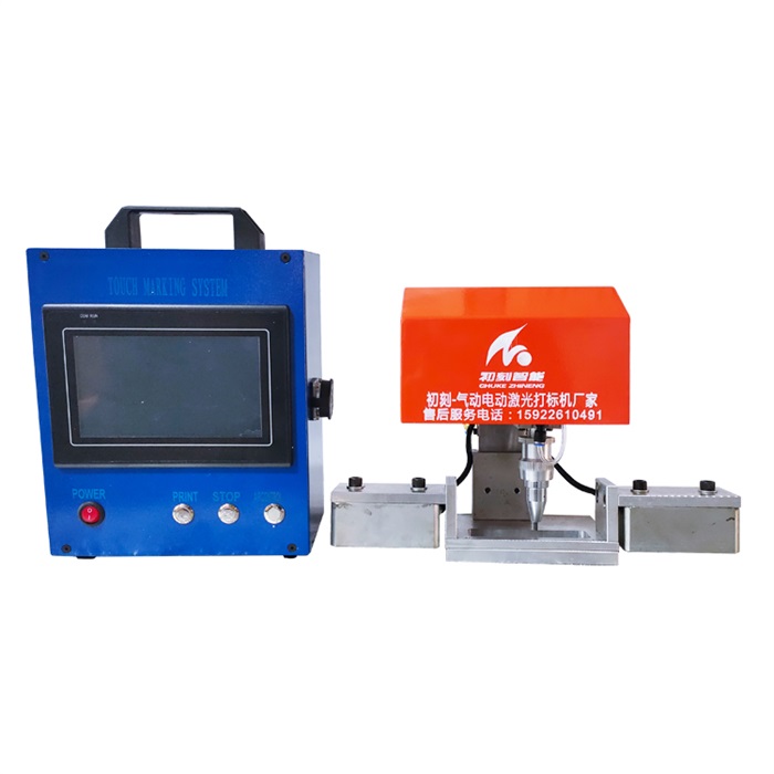 气动针式打标机也叫工业气动打标机,其原理是靠电脑控制打标机合金针头在产品表面上气压冲击打标,所以要针式打标机,是一种比较暴力的打标方式,其特点就是刻印效果有深度,噪音比较大,在打标机行业里面是一款性价比比较高的打标设备。