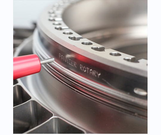 如小型法兰打标机,针对一些小型、易于搬动的法兰,我们就可以将其直接放置于工作台面上进行打标操作。同时,还可以配备小型旋转夹具,这样做就对圆周面进行打标。初刻智能采用4毫米高硬度打标针,打印深度深,即使后期加工上漆后,法兰标识依旧清晰可见。