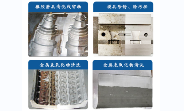 目前可适用于清洗固体电极、橡胶轮胎模具、航空发动机叶片、武器保养、大型镜面(如天文望远镜)、磁头、网纹辊(不会损伤网穴壁),能够完美彻底地清除干墨、胶黏剂、版材及刮刀的钢屑等、漂浮在水面上的油化物和路面的油斑、旧标识、斑马线等、大理石翻新、不锈钢等金属制品表面清洗处理、汽车维修除锈脱漆、文物清洗。除锈除膜、脱漆脱塑、脱脂脱蜡、祛油除污、清除氧化皮,适用范围极广。